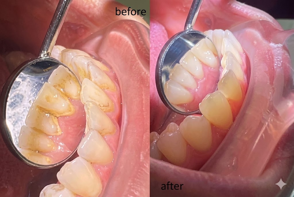 The Reality: Those “gaps” were always there. They were simply hidden by tartar buildup. When significant tartar accumulates between teeth, it fills the spaces and gives the illusion of closely positioned teeth. Once this buildup is removed through scaling, the natural spacing becomes visible again.